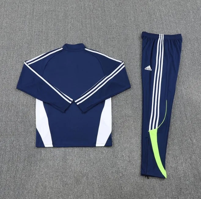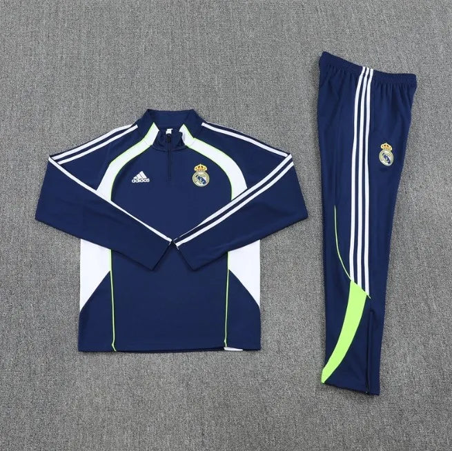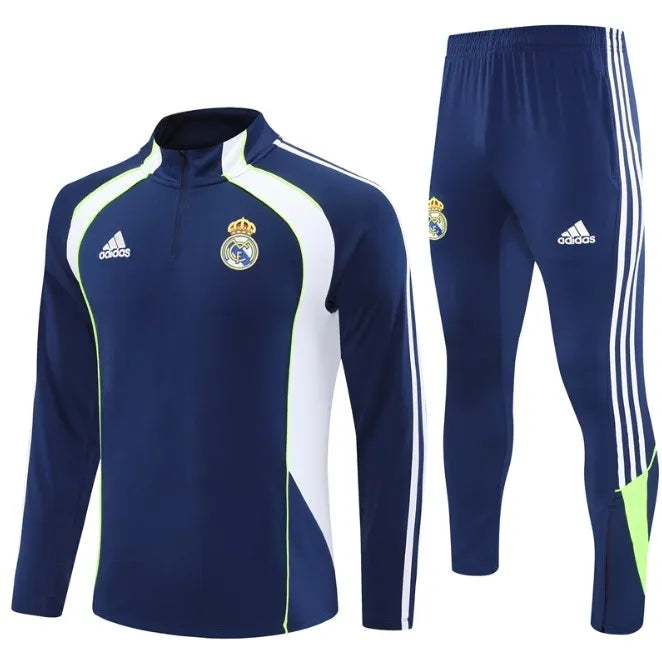 طقم رياضي لريال مدريد لموسم 2025/2026 بسحاب ربعي، أزرق/أبيض