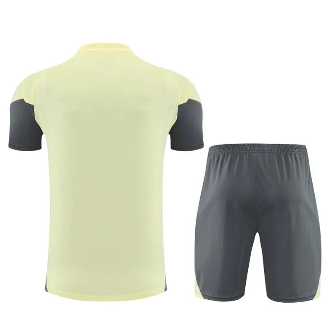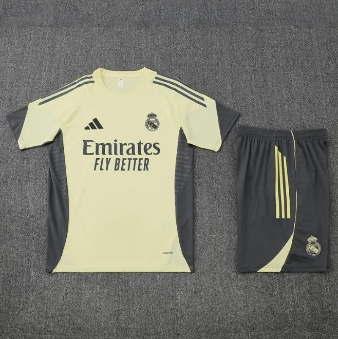 طقم رياضي أصفر بأكمام قصيرة وشورت من ريال مدريد لموسم 2025/2026